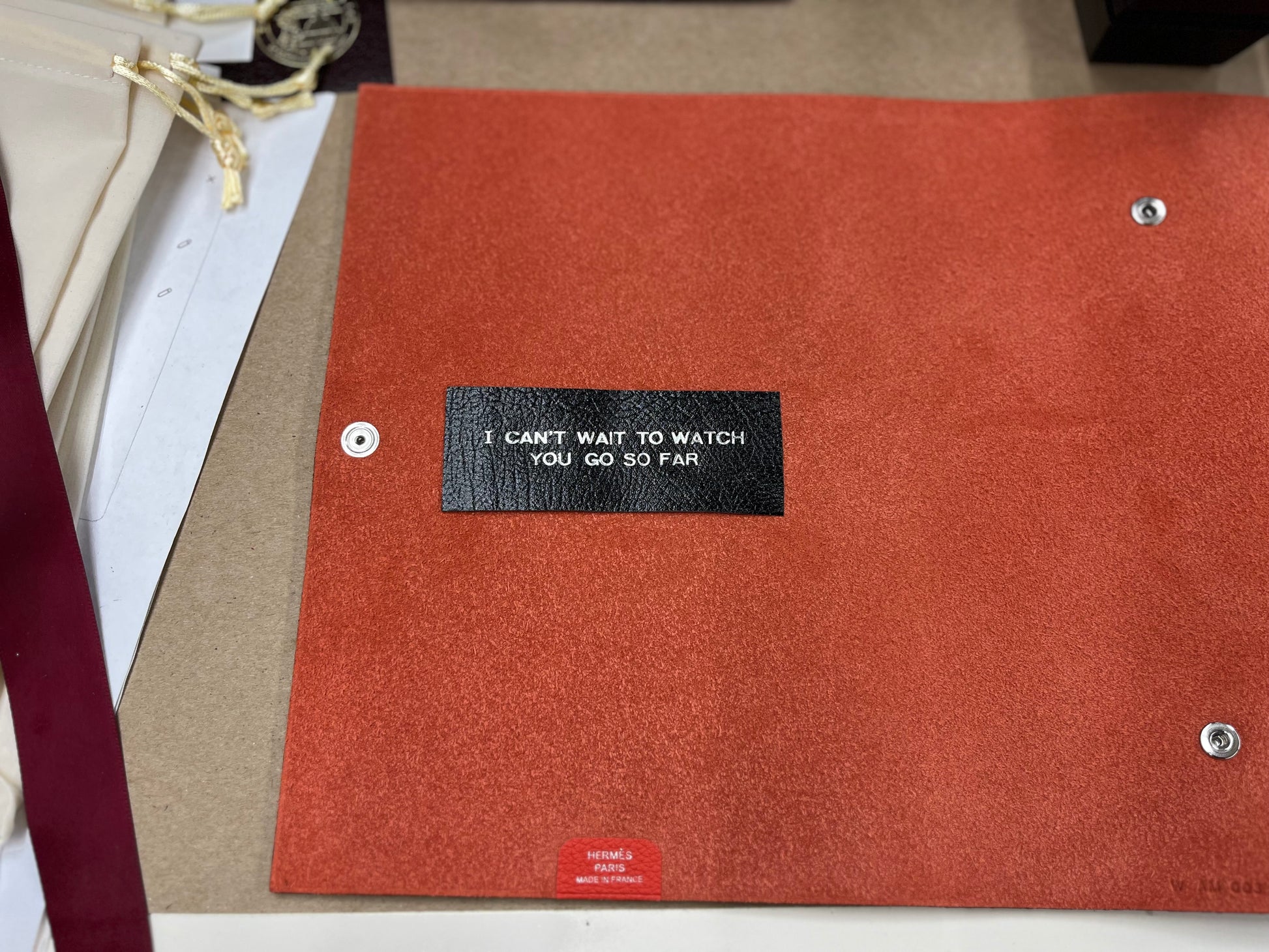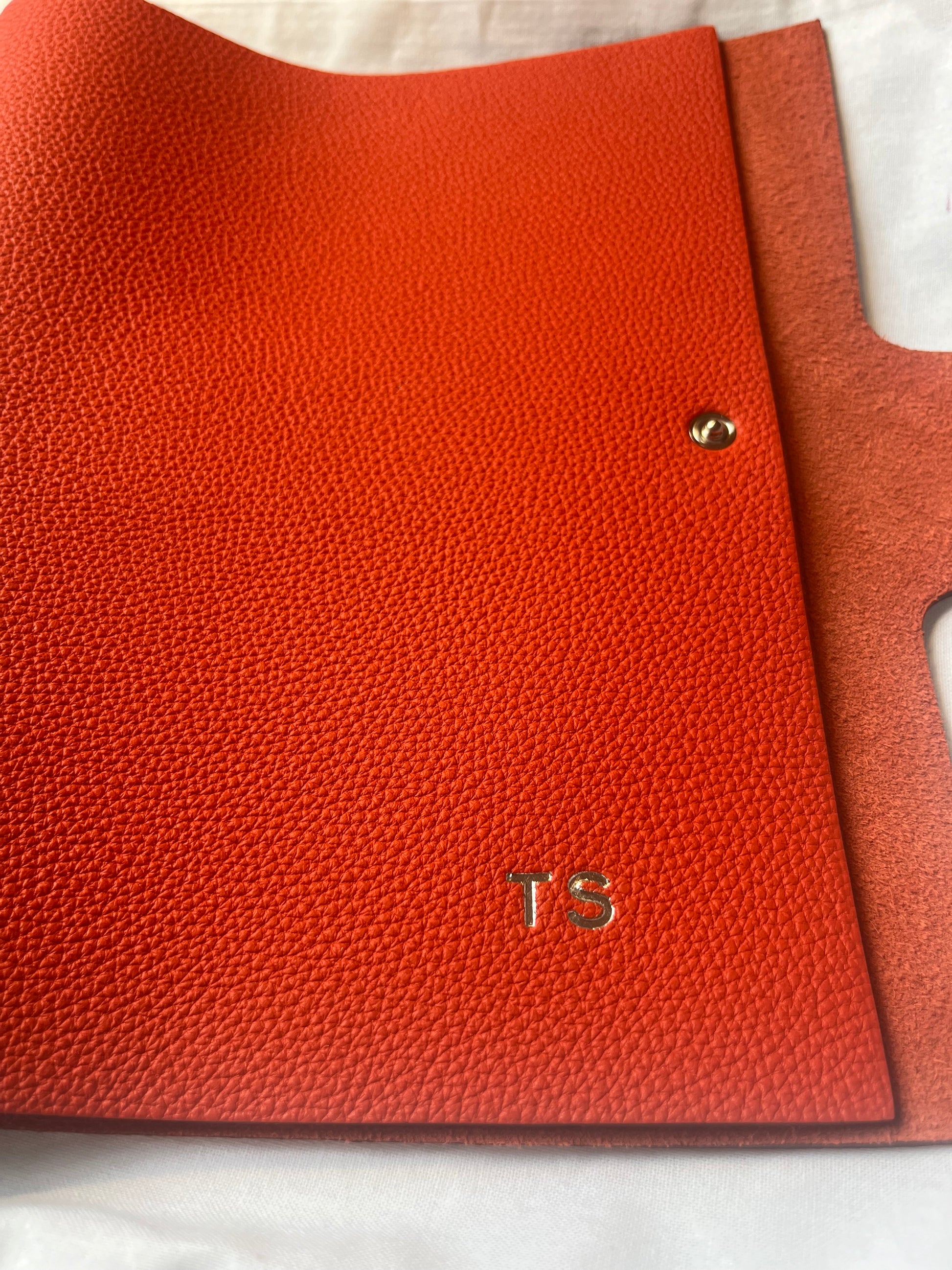 " Custom Silver Stamping on Orange Hermes Diary Cover | Initials and Interior Message