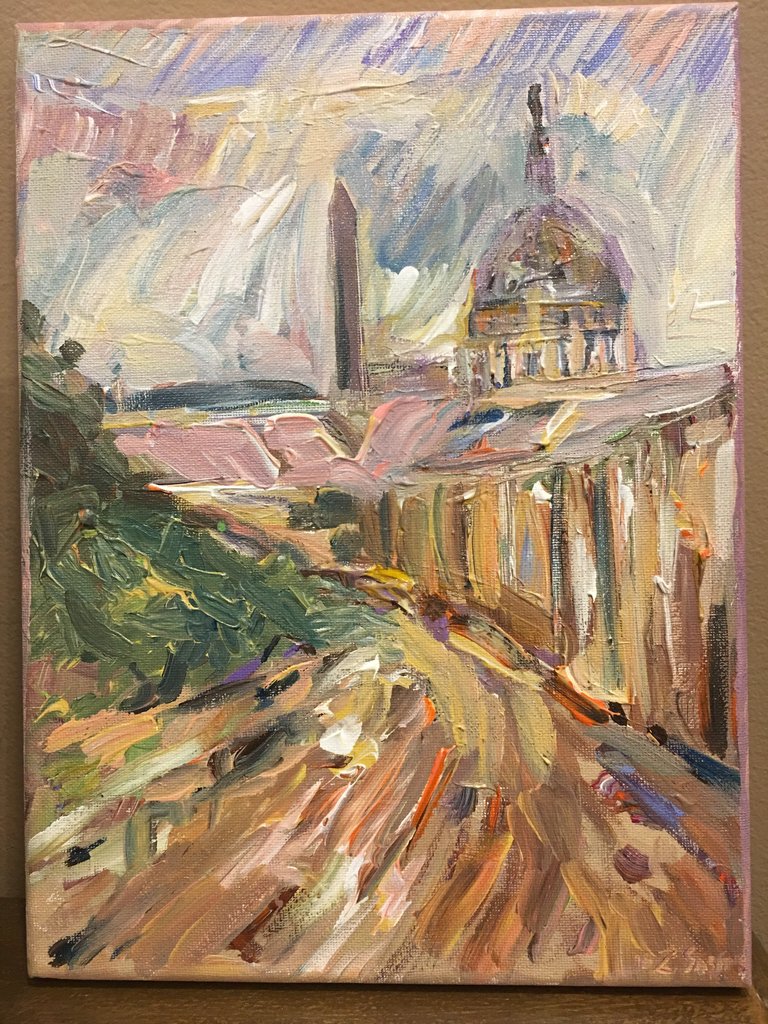 DC Meets Paris | Washington, DC Art | Original Oil and Acrylic on Canvas by Zachary Sasim | 9" by 12" | Commission