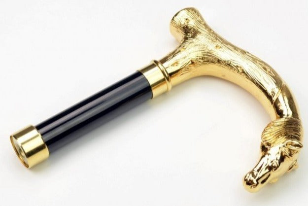 Gold Horse Head Handle | Gold Plate Horse Head Handle Gent's Umbrella | Custom Gold (also produced in silver) Horse Handle Umbrella | Extraordinary Custom Umbrellas | Enjoy the Rain!