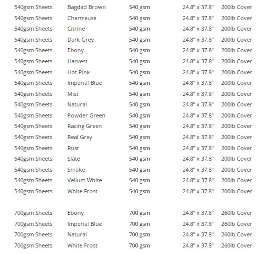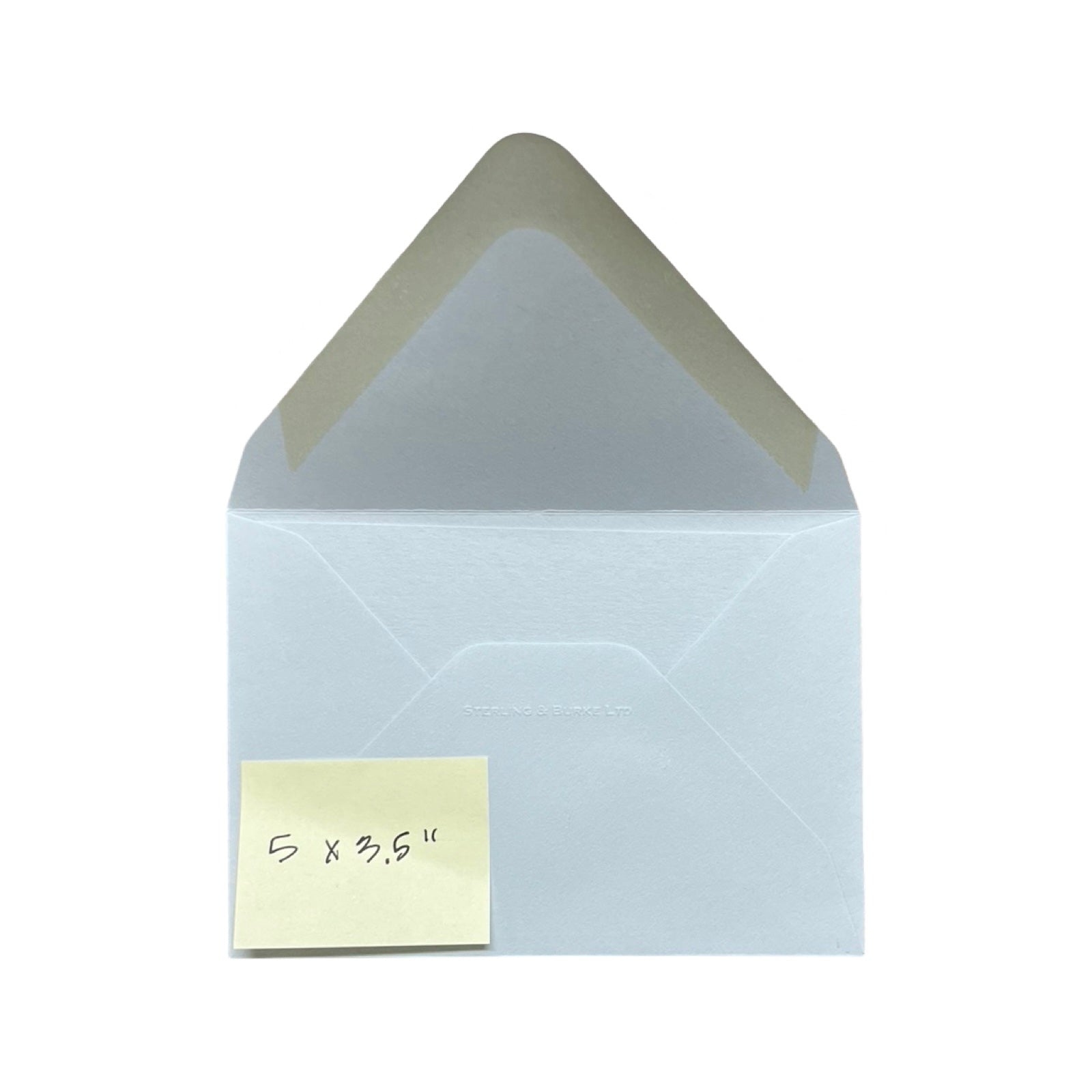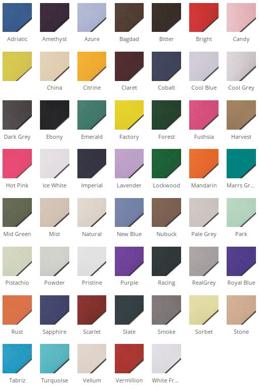 Cool Blue and Azure Blue are also available as 130lb stock. These card will be produced on larger stock and cut to the appropriate size to fit the selected envelope.