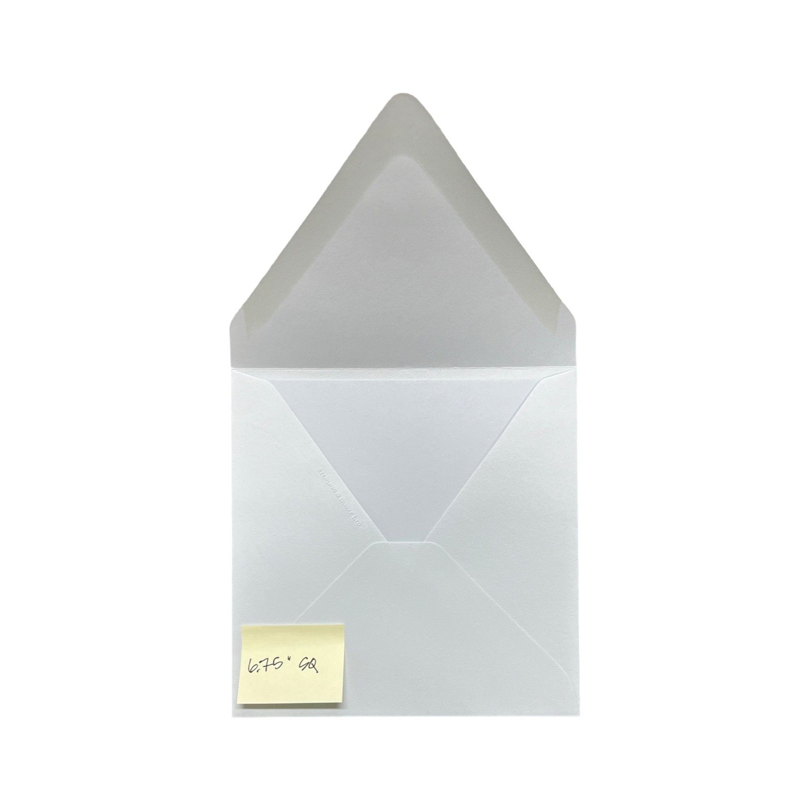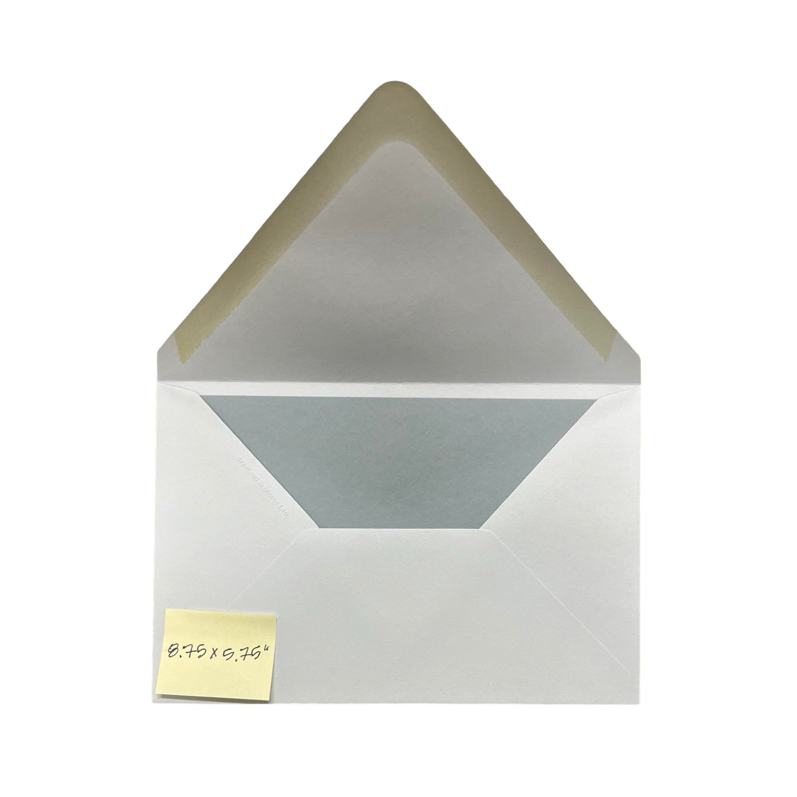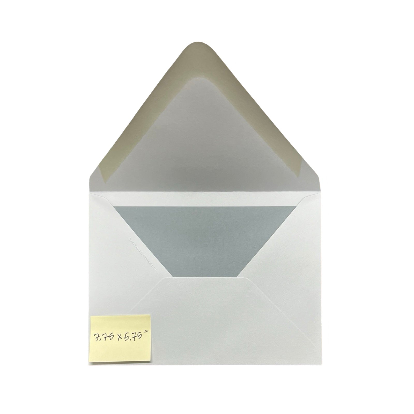 Regarding the Envelopes: The Dusty Blue Square Envelope is available in the 6.75 by 6.75 inch size only. If you wish for a 6.5 by 6.5 inch envelope, please consider Cool Blue and Azure Blue as that size is available in these colors. Other envelopes required for the Invitation will be fine - if a required envelope size is not available, we will produce them.
