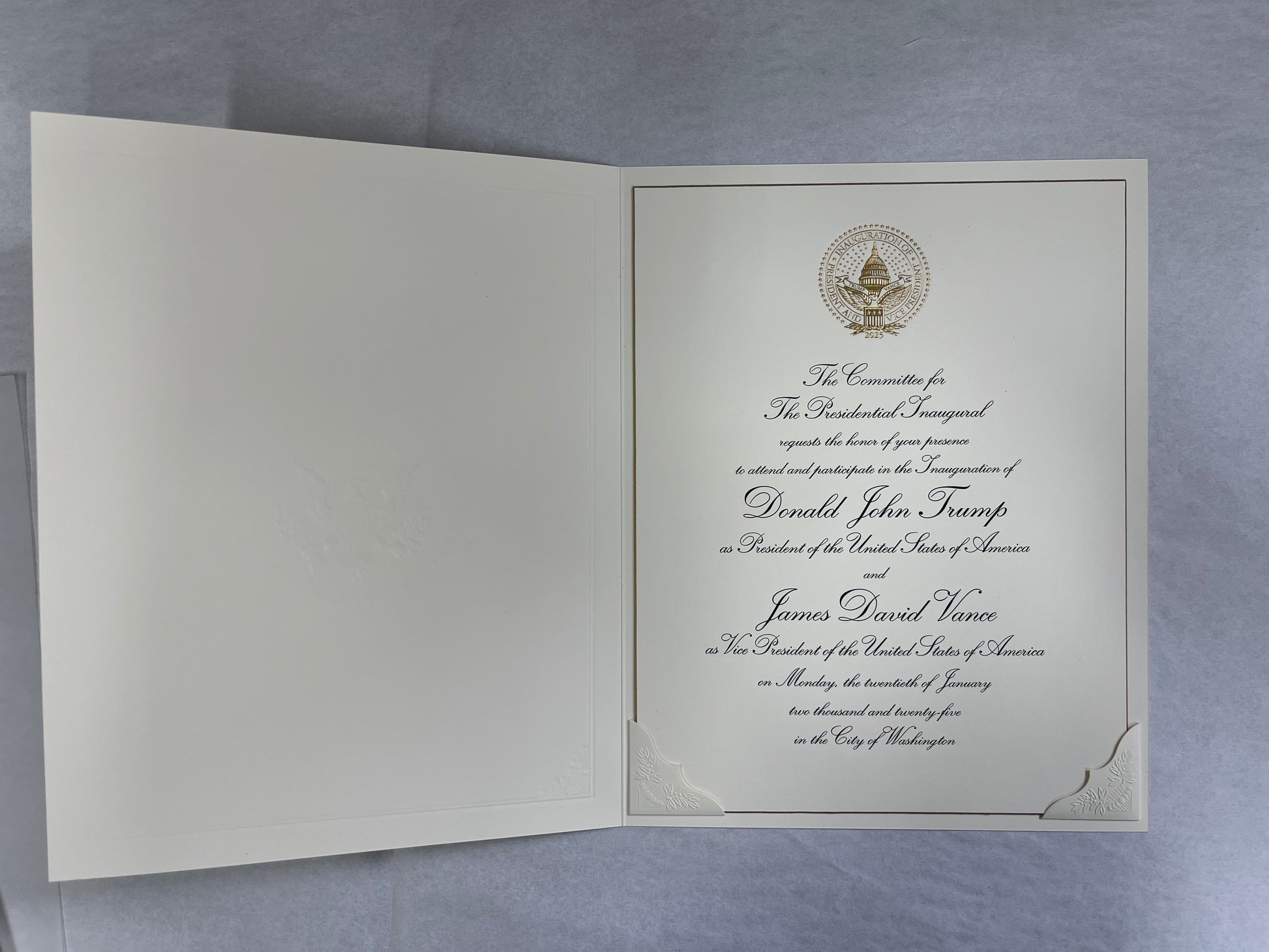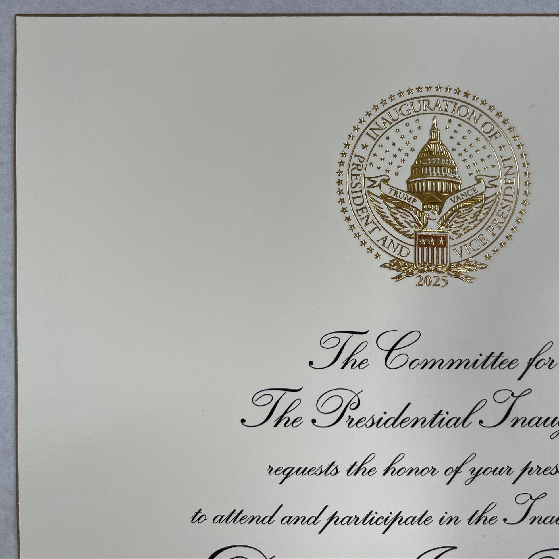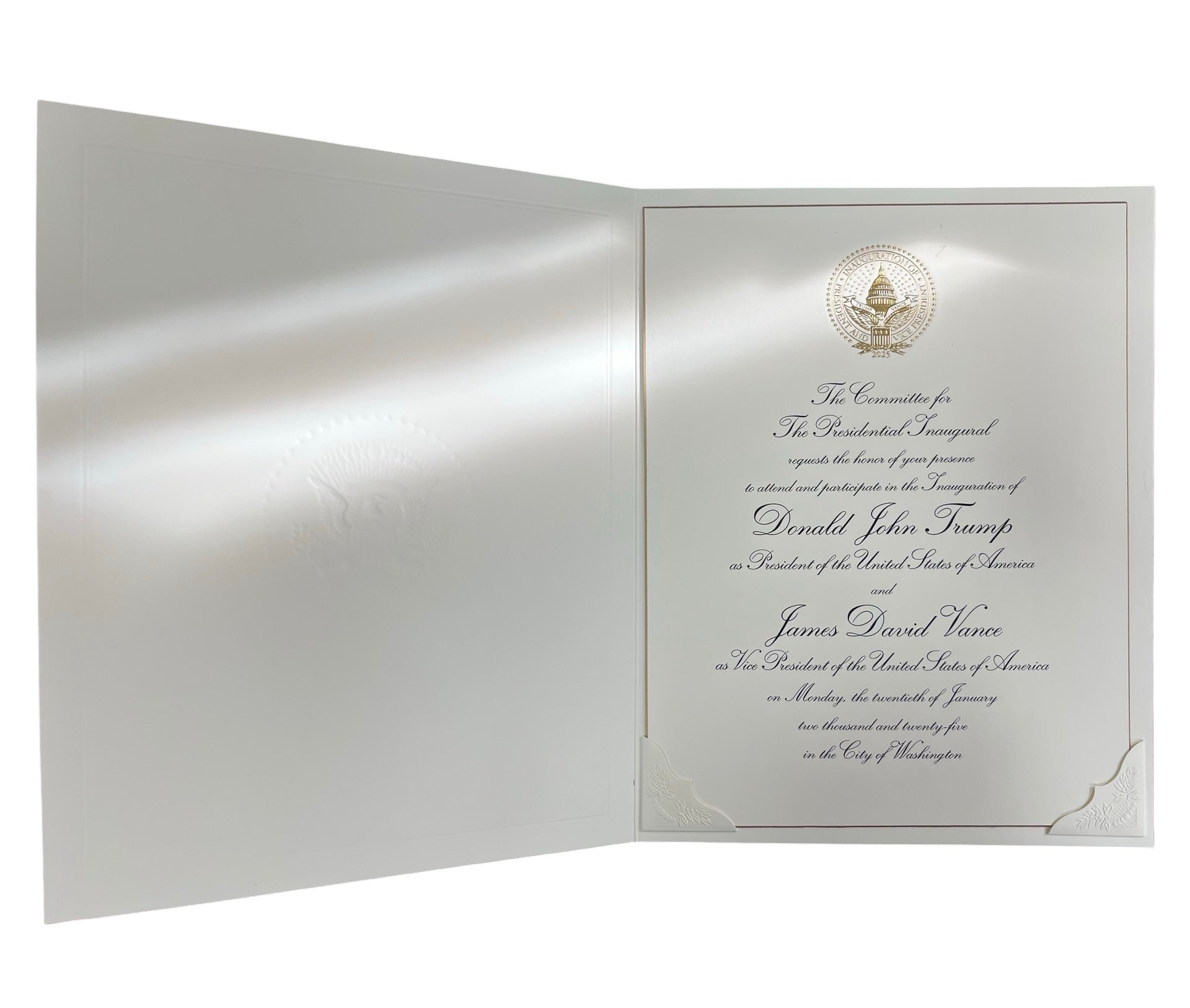 TRUMP Inaugural Invitation | 20 January 2025 | White House Inauguration Invitation | 2025 President Trump Invitation