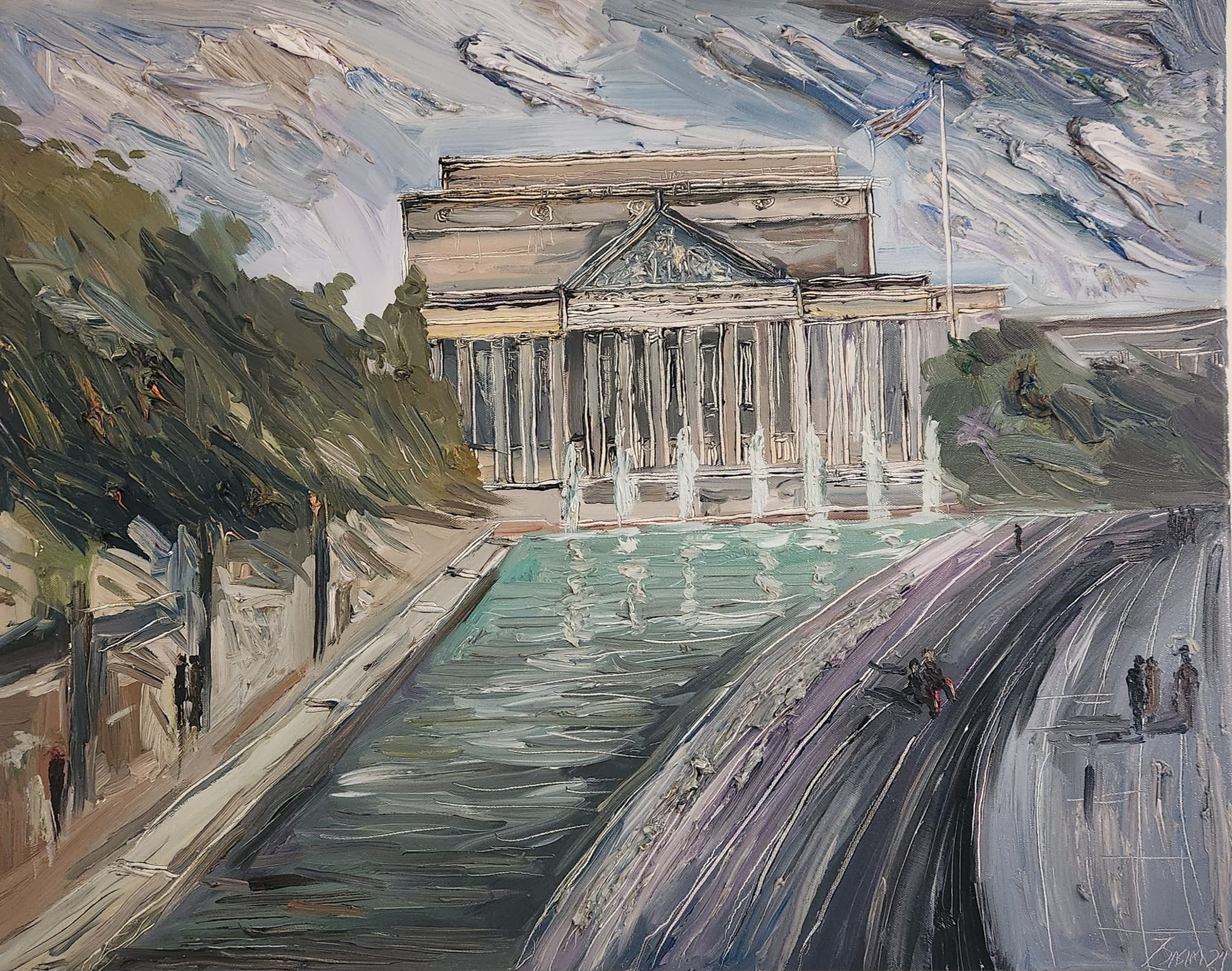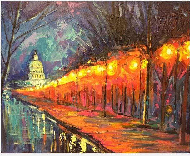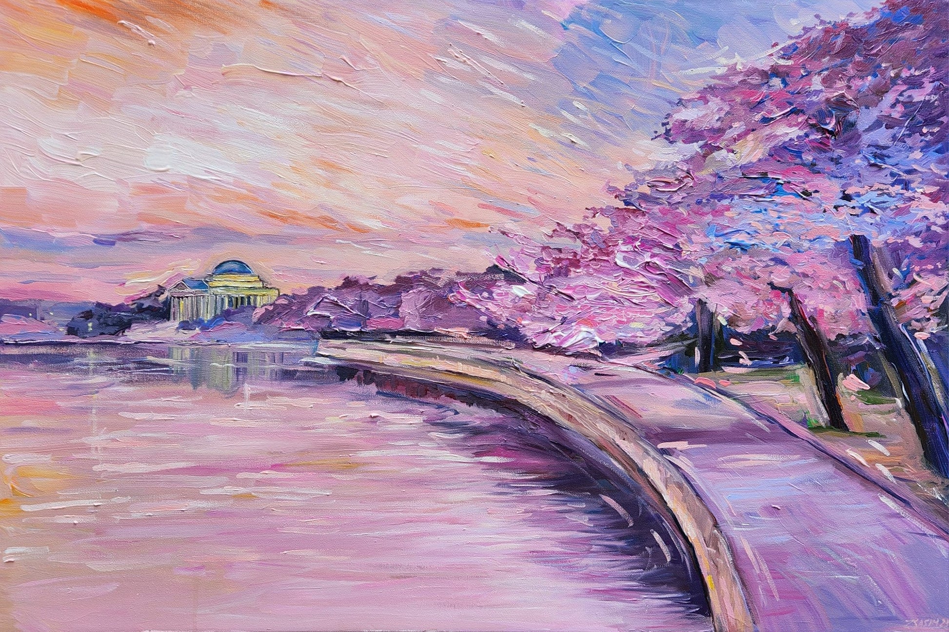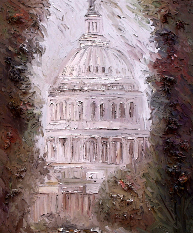 This artwork is available as a commission. He is able to create additional, similar pieces of Washington, DC. The pricing shown is appropriate for an original painting of the same size. Mr. Sasim will happily produce custom-made selections of this DC painting in the size that suits your needs. Original Art may have alterations that are specific to you.