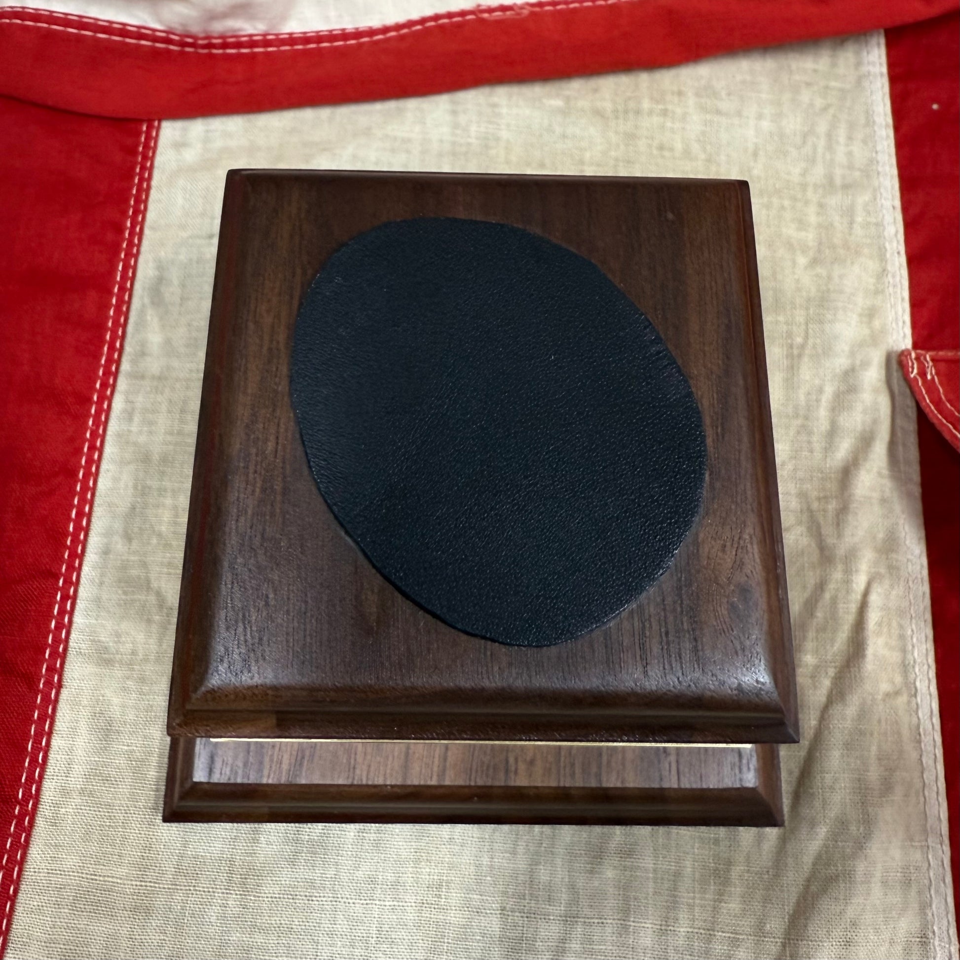 Award to be similar to the Capitol Jar version: black leather, engraved plate with black and logo and text, packaged for shipping.