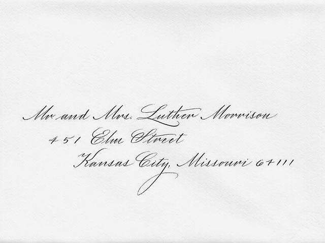 - Address Protocol: we use State Department & White House protocol for all calligraphy. On envelope addresses, apartment numbers and titles; such as "the Honorable" are on separate lines